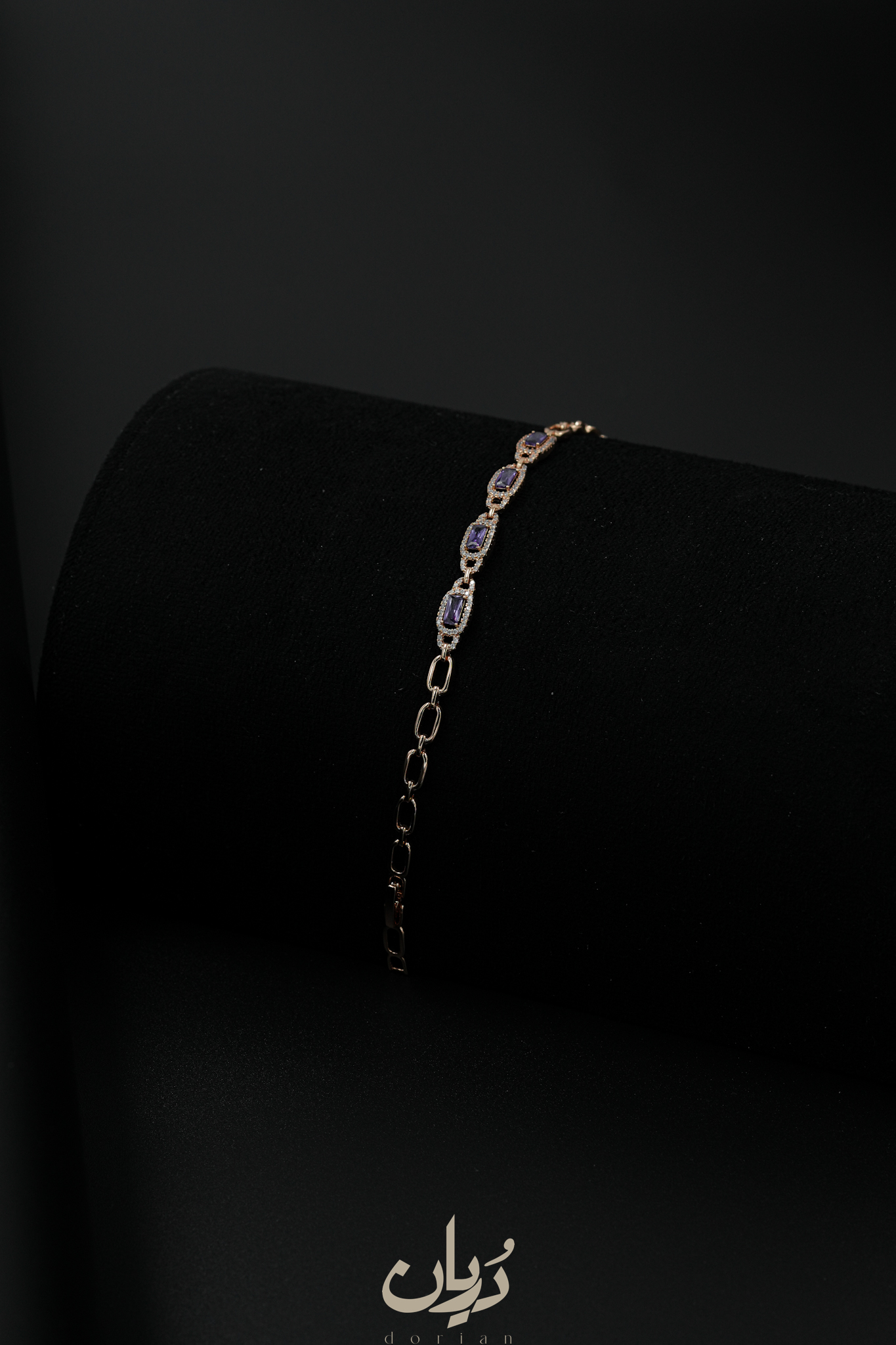 دستبند طلایی نگین بنفش