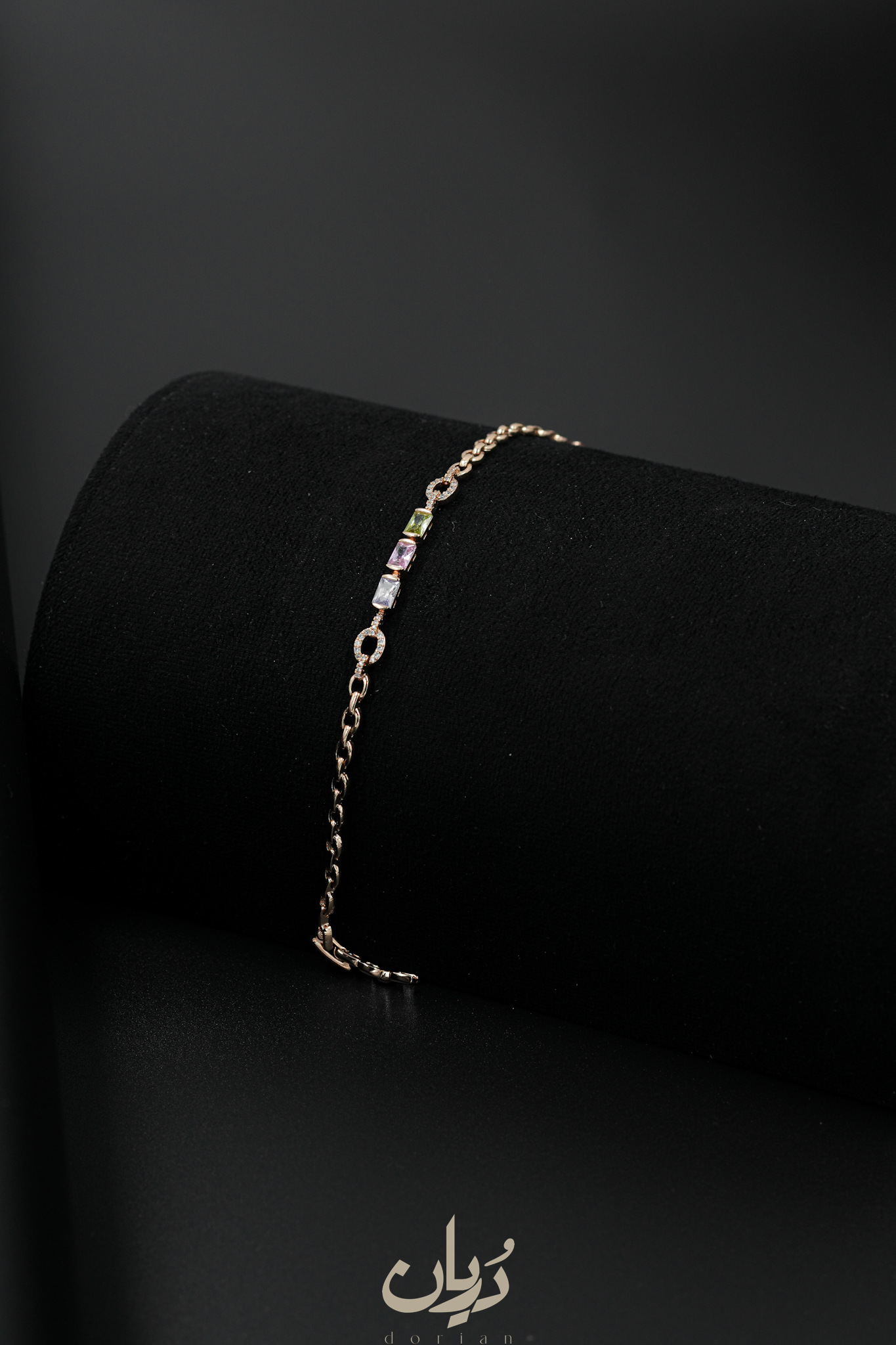 دستبند طلایی نگین رنگی